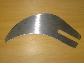 At this point I put the blade on the arbor and knife on the saw. I had to do a little grinding for clearance from the blade, and shorten it's height just a tad. I also ground a bevel on the front to have a knife edge so the wood would not hit an abrupt edge. So when when I was done it was about 1/8" from the blade, and about 1/16 lower than the top. The split in the arm worked really well, I had to fuss with back of the arm a little to get the knife perfectly aligned with the blade. And the oversized hole design allowed me to do that easily. The knife holding mechanism works great as well. 1/4 turn and the knife comes out. But since this works the way a riving knife should, I will only be removing it when I put my dado stack in.