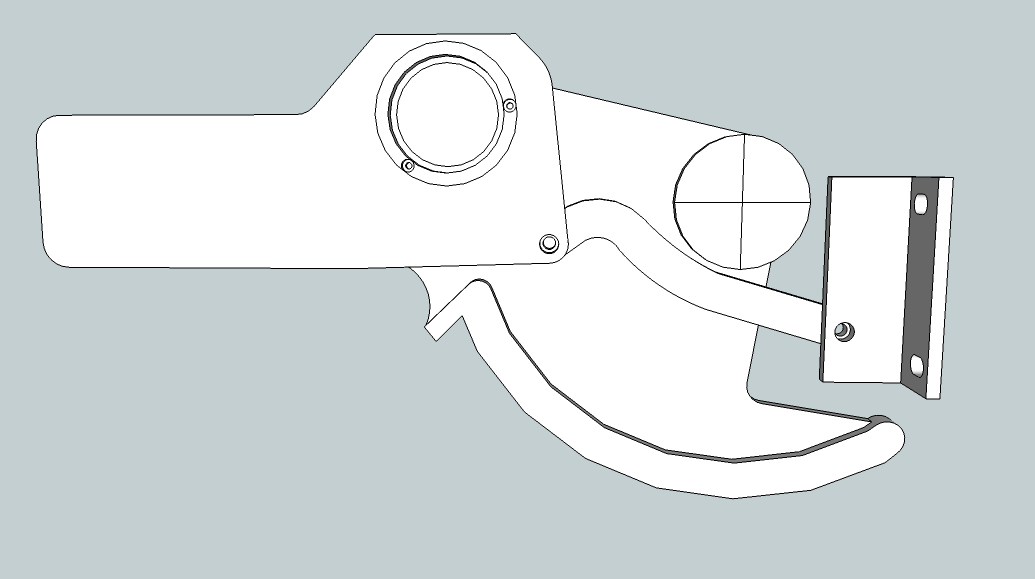 This is actually an after picture. with the arm installed I found first that I had drill the pivot hole in the wrong location. I must have moved the table on the mill in the wrong direction from my marked point, since the hole was 1/8" above the line when it needed to be 1/8" below the line. So I flipped the piece and re-drilled the hole on my drill press. The arm also hit the letters that were cast into the yoke (visible just below the arm in the above pic) and the yoke casting also flared out a lot from the pivot point and I had to grind some of the arm away to clear these two obstacles. But after that everything moved freely and apparently level.